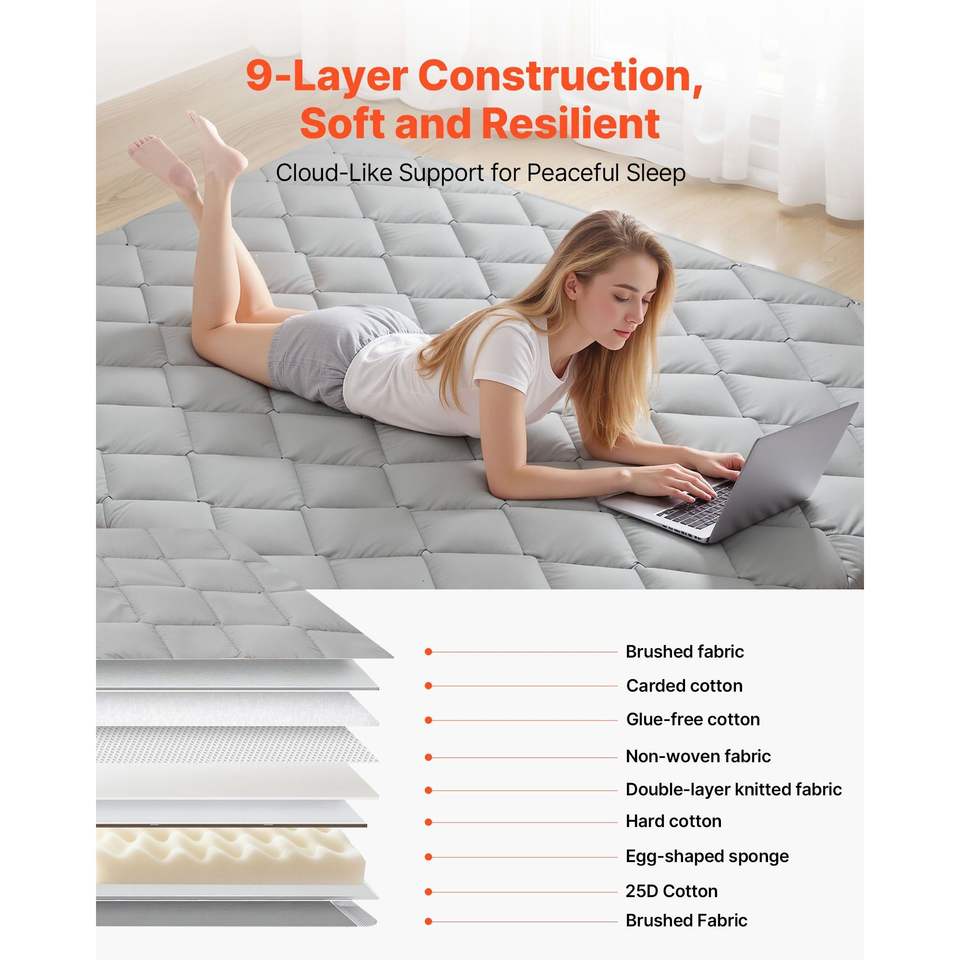 Matelas Tatami Japonais Pliable à 9 Couches Taille Queen 80 X 60 X 2,5 Pouces Gris Sac de Rangement à Fermeture Éclair pour Dortoir Sommeil Sol