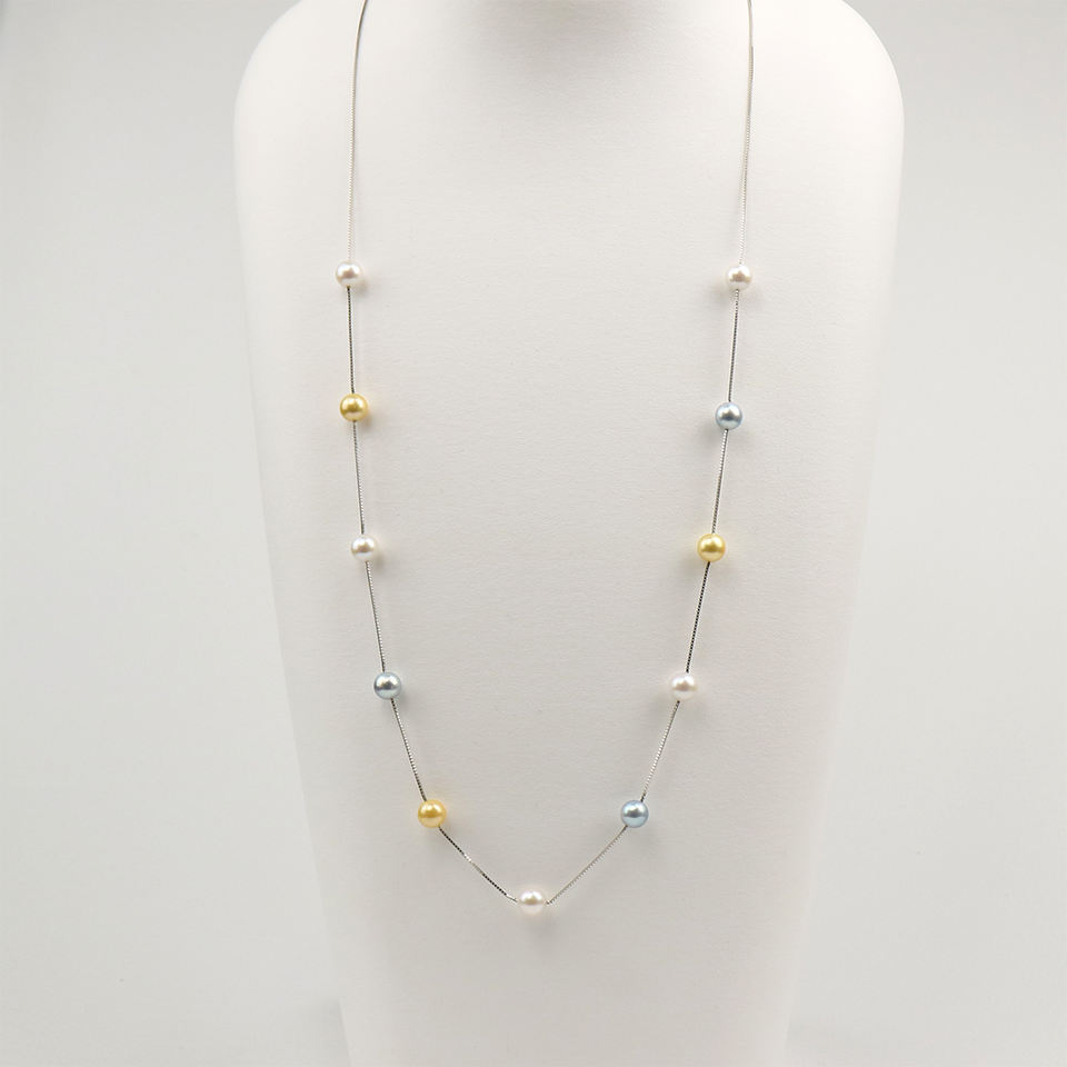 Nom du produit:Collier long multi-rangs avec perles Akoya argentées.