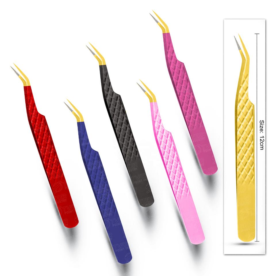 Pince à épiler en acier inoxydable à poignée diamantée importée de Japonais pointe pointue pour les extensions de cils isolant les cils naturels