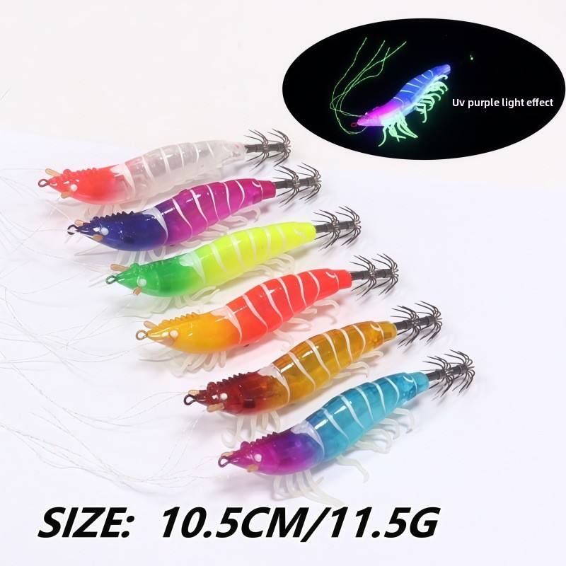 Leurre de pêche japonais à pointe d'encre, imitation crevette souple, avec crochet de type buse de soufflage pour la pêche en équilibre et au saut, et moustache de dragon lumineuse