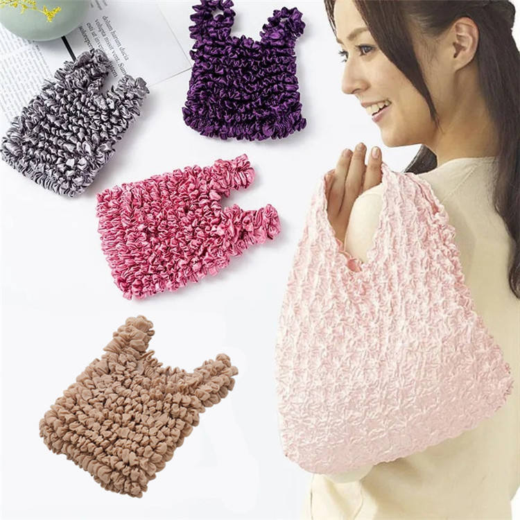 Sac de shopping japonais coréen à grande capacité pliable magique plissé à bulles réutilisable en polyester avec poignée légère livraison rapide