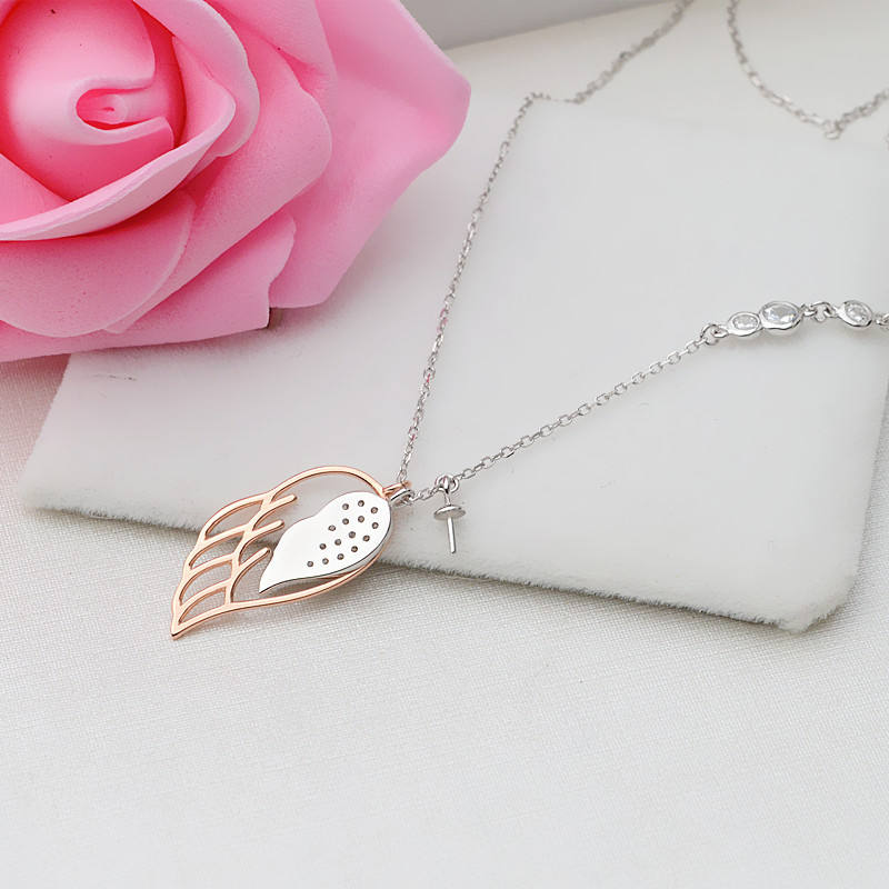 Japanese Korean S925 Silver Chain Women's Wing Pendant Necklace Empty Pearl Holder DIY Semi-Finished Jewelry Findings Components