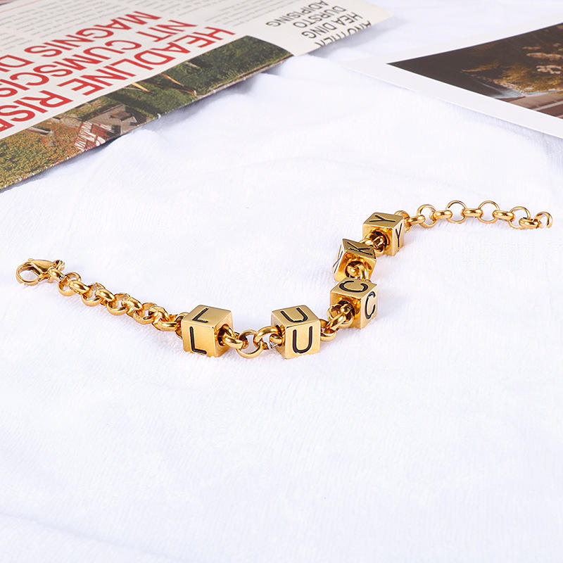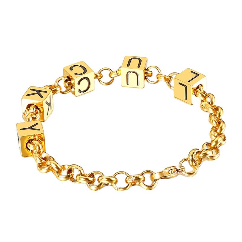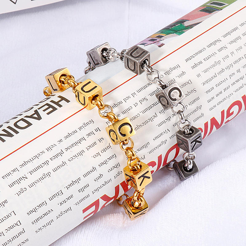 Style HIPHOP, acier titane, alphabet anglais porte-bonheur, bloc géométrique, unisexe, design personnalisé, rétro, pour anniversaire