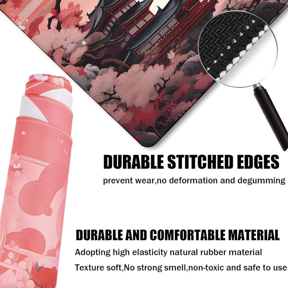 Grand tapis de souris de jeu japonais avec bords cousus 30*80cm, base en caoutchouc antidérapante et imperméable, pour ordinateur portable et bureau, design coucher de soleil