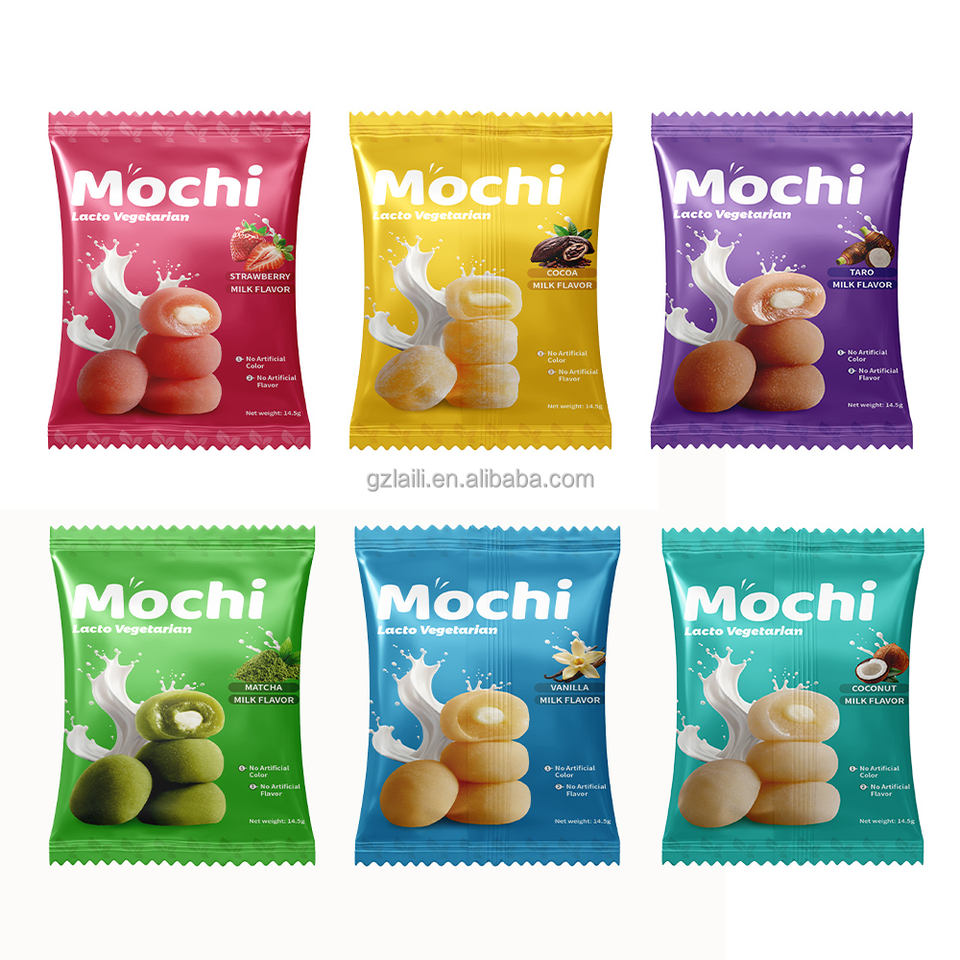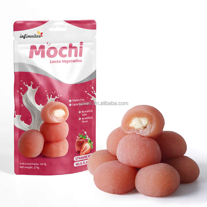 Mochis Japonais à la Fraise et au Lait, Gâteaux de Riz Moelleux Séchés, Sandwichs d'Usine avec Grain Doux, Snacks et Desserts en Sachet