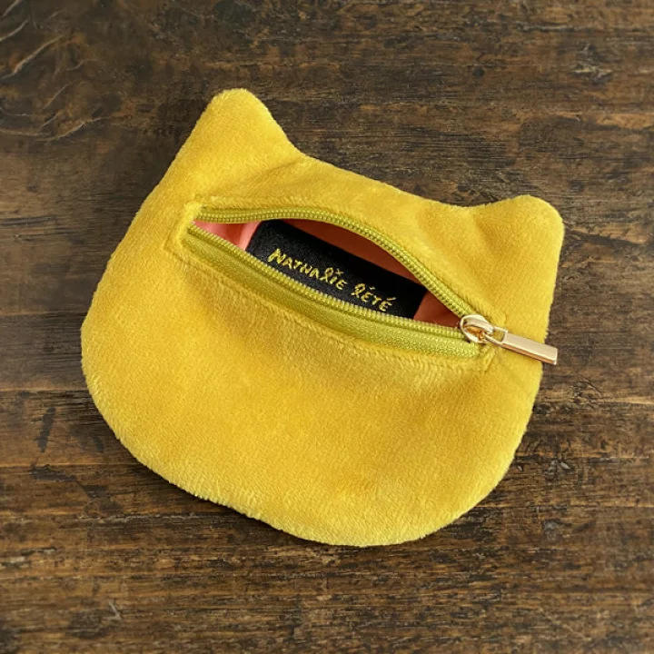 Porte-monnaie en peluche brodé avec illustration de chat Nathalie Lete japonaise, fermeture ouverte, sac de rangement, dessin animé mignon, petites choses, unisexe