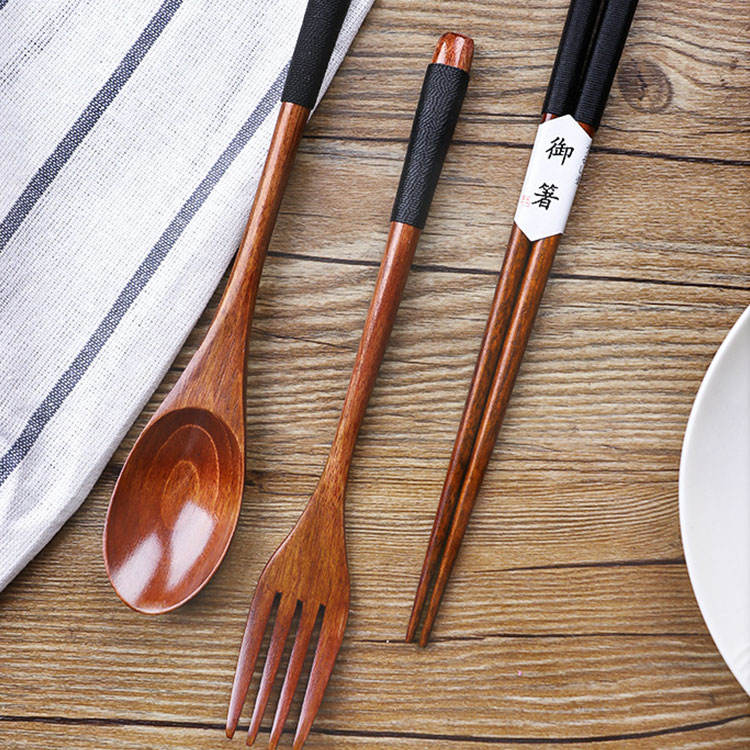 Nom du produit:Cuillère en bois massif Fourchette baguettes couverts avec sac en tissu