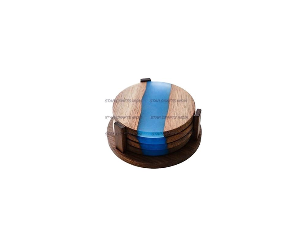 Tapis de tasse à thé en résine japonaise thé créatif fleur en bois d'acacia massif cristal résine époxy meilleur sous-verre ensemble résine en bois d'acacia