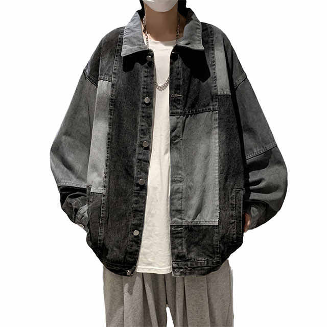 Veste en jean patchwork rétro japonaise – Vêtement d'extérieur décontracté pour homme, coupe ample, style délavé confortable