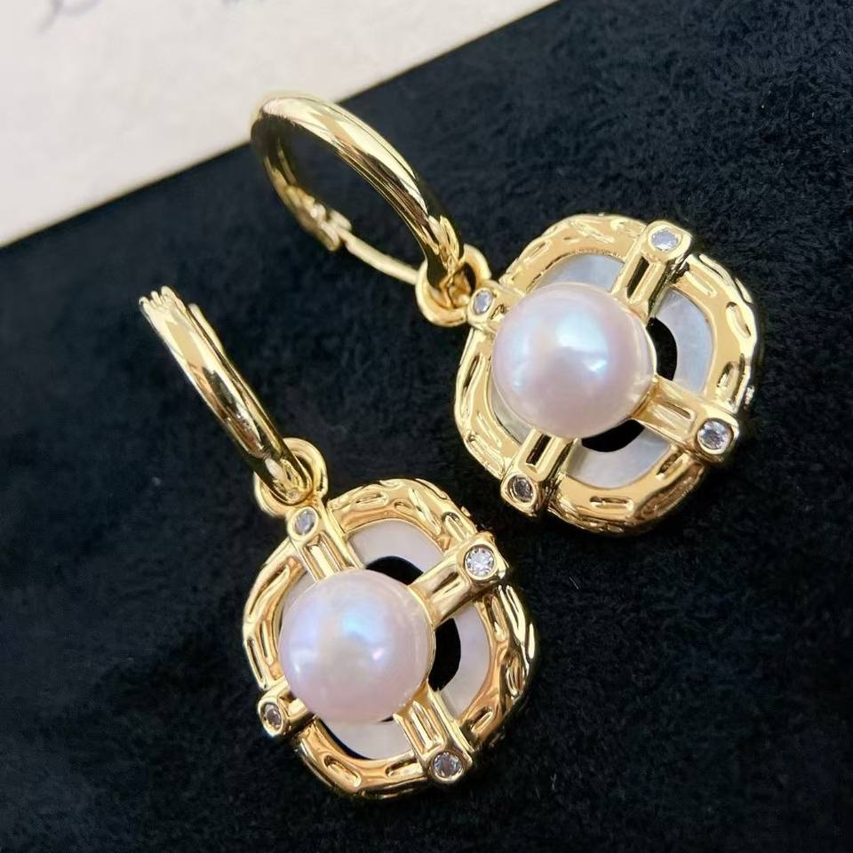 Boucles d'oreilles en perles d'Akoya d'eau de mer japonaise, petite fée, style européen américain, presque sans défaut, bijoux fins à pendentif