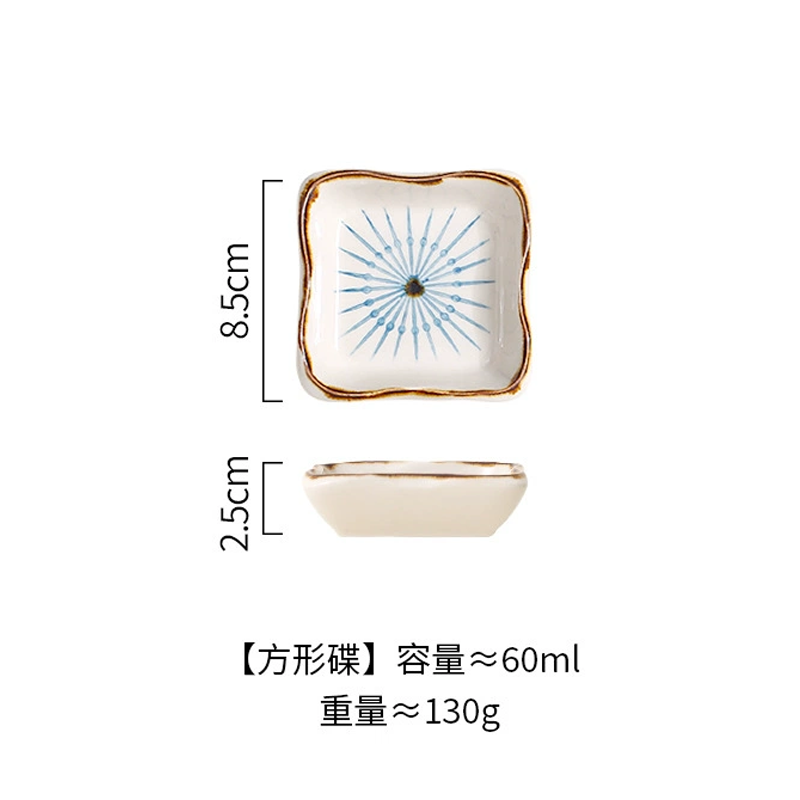 Assiette à soupe et plat à condiments en céramique de style japonais, peinte à la main sous glaçure, design moderne minimaliste