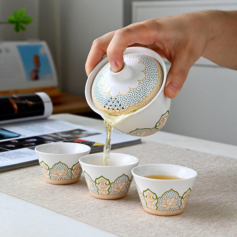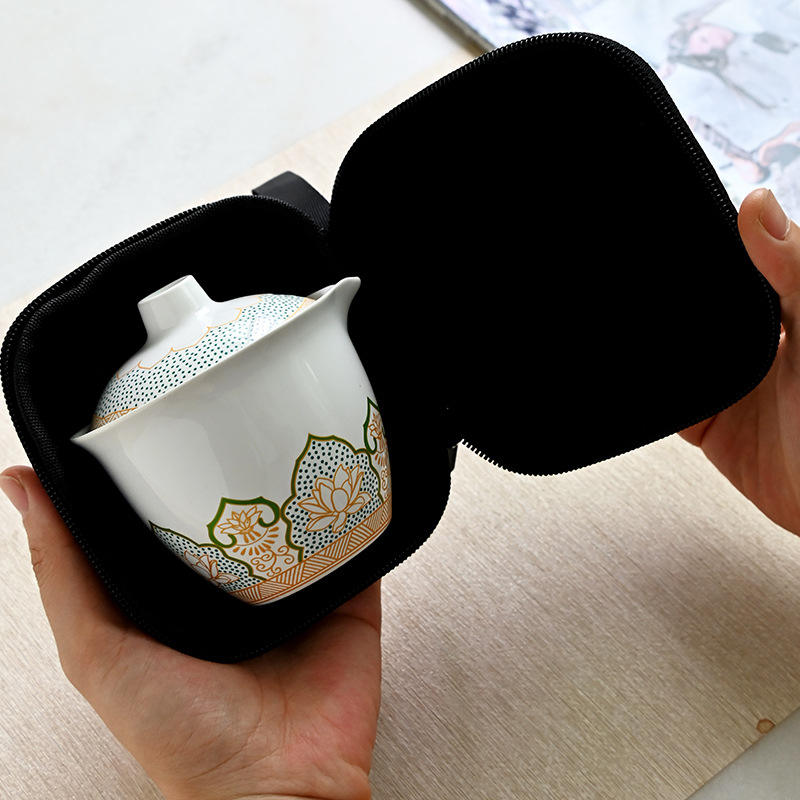 Service à thé Kung Fu en céramique de style japonais, porcelaine, 3 pièces, portable, pour voyage en plein air, théière avec tasses, idéal pour un cadeau
