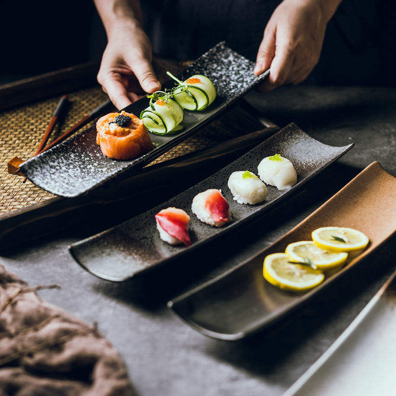 Assiette à collation en céramique de style japonais Vaisselle longue durée pour hôtel, restaurant, sushi, sashimi pour le camping