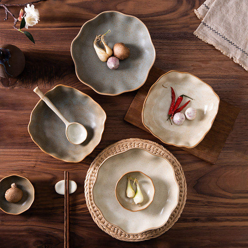 Vaisselle en céramique de style japonais, assiettes à dîner, grandes assiettes de service, assiettes à salade, assiettes profondes, assiettes plates en poterie rustique