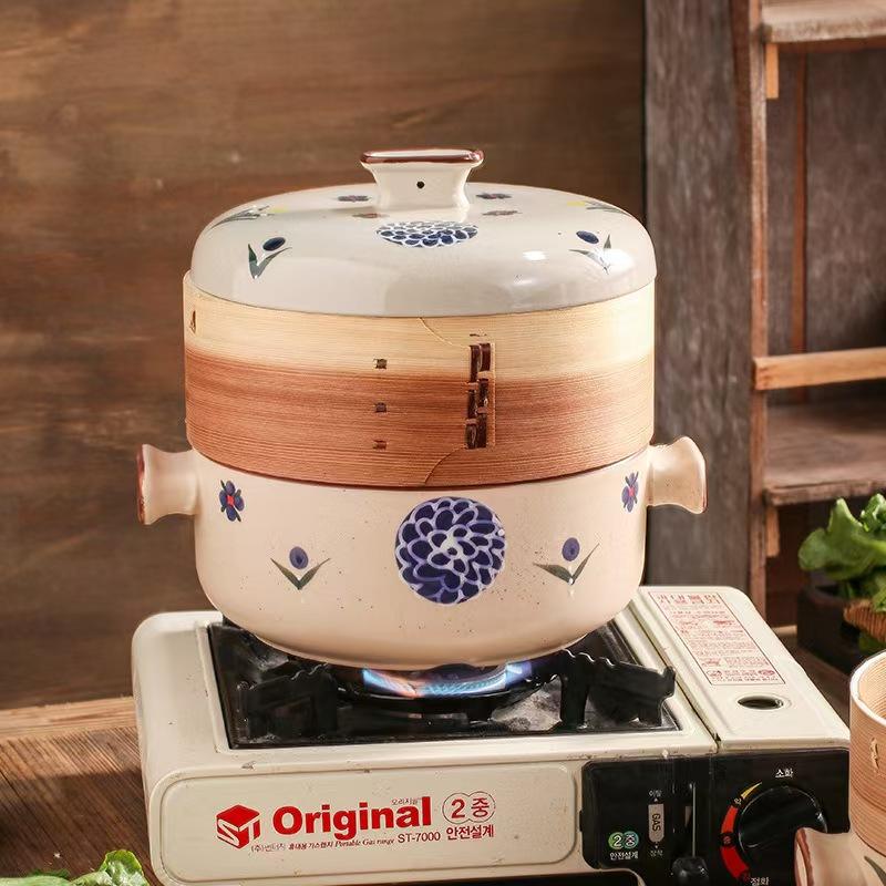 Casserole à vapeur en céramique de style japonais classique avec tiroir pour ragoût de soupe et casseroles