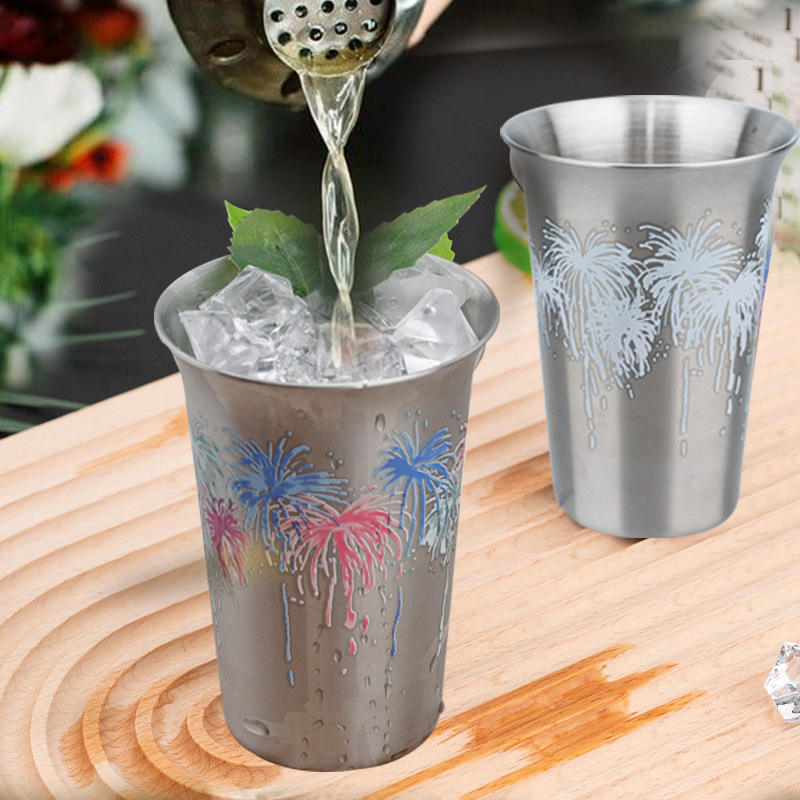 Verre à vin en acier inoxydable de feux d'artifice changeant de couleur de refroidissement de style japonais adapté aux réunions de famille fêtes restaurants