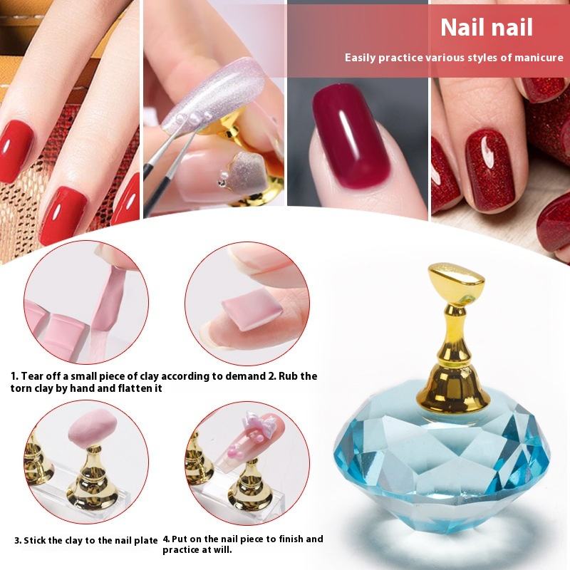 Présentoir de pointes d'ongles en argile à base de diamant de style japonais, matériel de brosse en plastique pour la pratique et l'entraînement des ongles