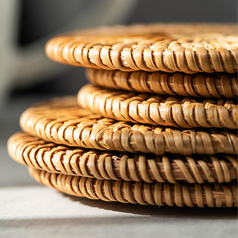 Sets de table ronds en rotin faits à la main de style japonais, antidérapants et isolants pour salon, restaurant extérieur et espaces commerciaux