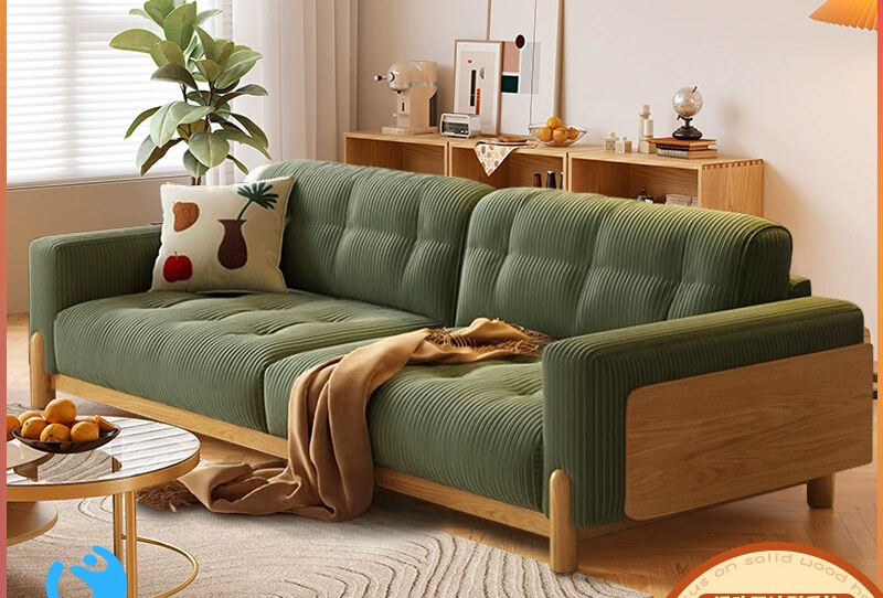 Style japonais haut de gamme crème tissu d'ameublement bois salon 2 3 places salon tissu canapé