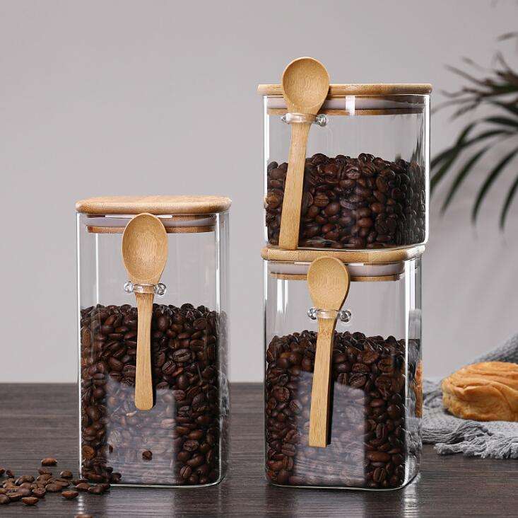 Maison De Style japonais Organisation De Cuisine Bocal En Verre Clair Récipient En Verre Avec Cuillère En Bois Et Couvercles Pour Garde-Manger Grains de Café