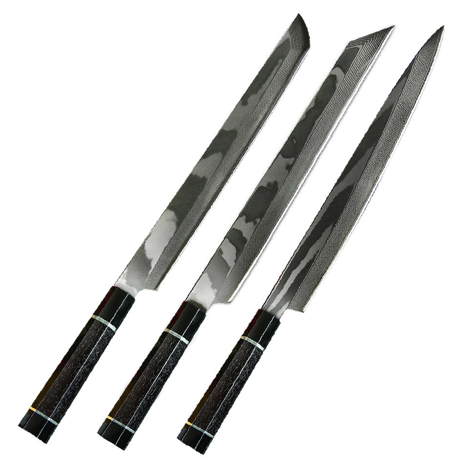 Couteau à Sushi shashimi pour le saumon, ustensile japonais traditionnel de cuisine en acier damas