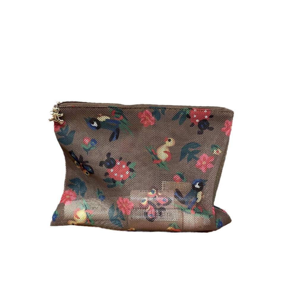 Sac en filet de style japonais avec motifs coccinelle, canard, floral et oiseau, nouveau style, imprimé dessin animé mignon, sac de rangement et trousse de maquillage à très grande capacité