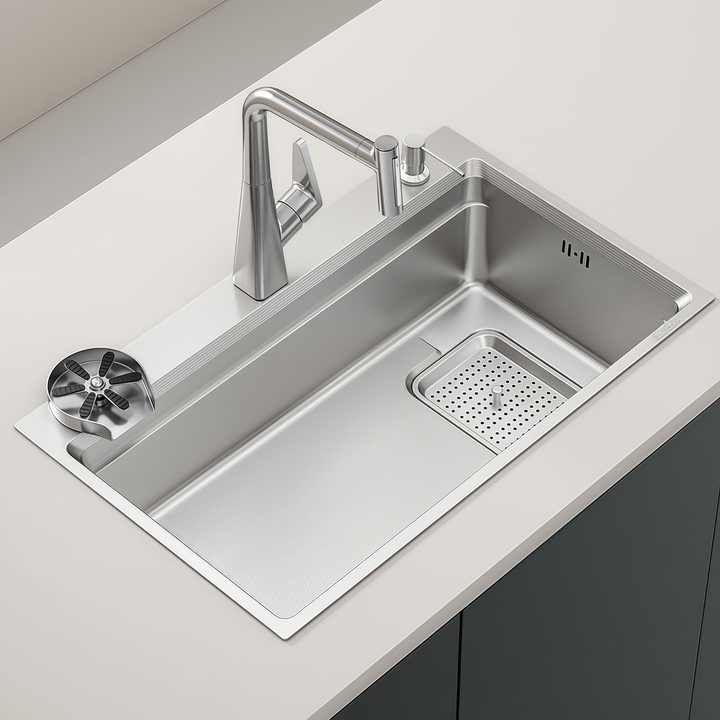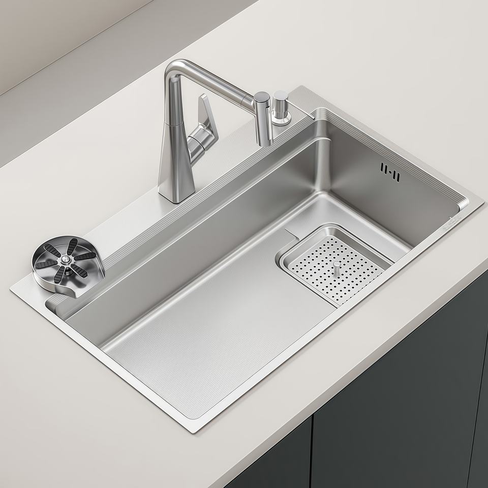 Évier de cuisine japonais grand format à cuve unique en acier inoxydable 304, motif grain de riz 3D, avec vidange à droite