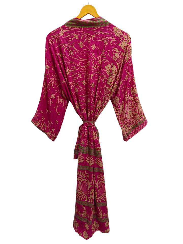 Robe longue de style japonais, vêtements de détente, couvre-bikini, vêtements de bain, kimono en soie de sari recyclée indienne, robe de nuit