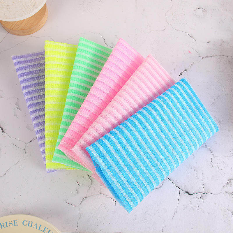 Éponge de bain en nylon de style japonais - Serviette de bain longue rayée pour femmes et hommes - Loofah exfoliant pour la douche, le spa et la sauna