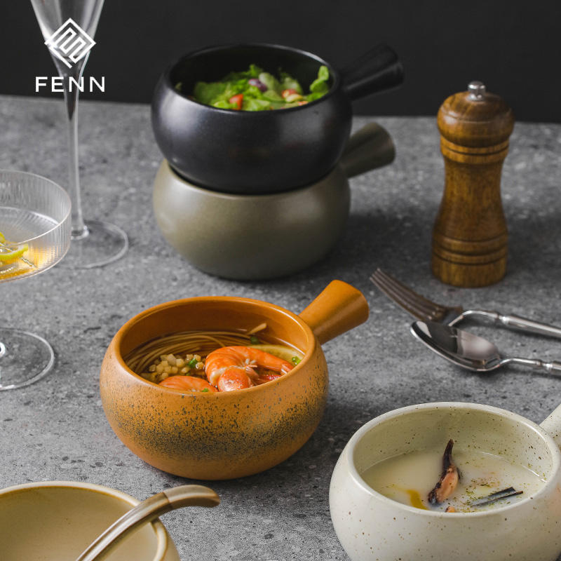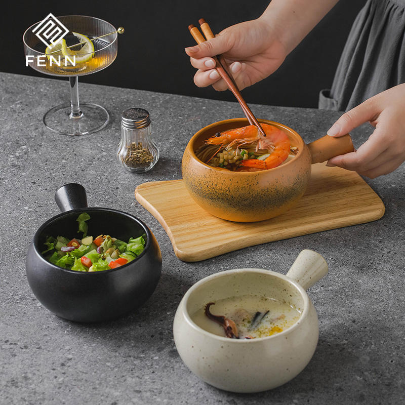 Poignées en céramique de grande capacité en porcelaine de style japonais pot à soupe bol à soupe bol à soupe bol en céramique vaisselle pour restaurant