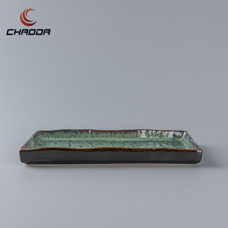 Assiettes rectangulaires en céramique de style japonais Assiettes de cuisine à longue bande Sushi Sashimi pour restaurants spécialisés