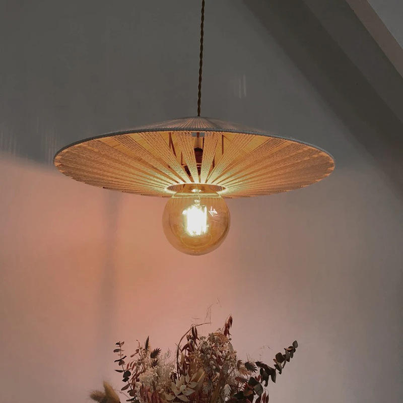 Lampe suspendue ronde en corde tressée de style japonais, LED E27 à tête unique, pour salon, chambre à coucher, salle à manger, salon de thé, restaurant