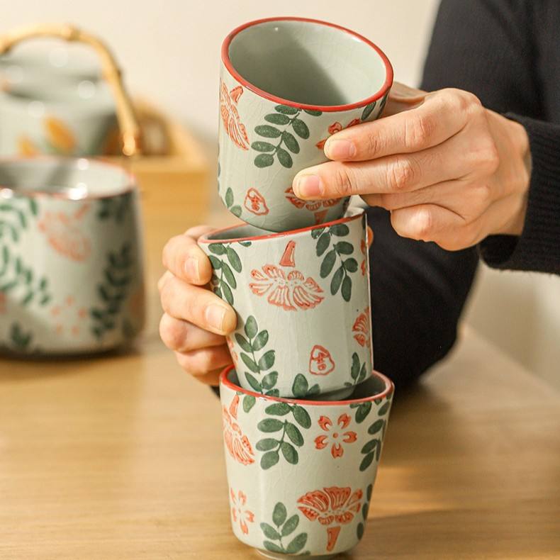Théière en céramique rustique de style japonais, théière rétro avec tasses, carafe à eau froide domestique, ustensiles de préparation du thé en poterie brute