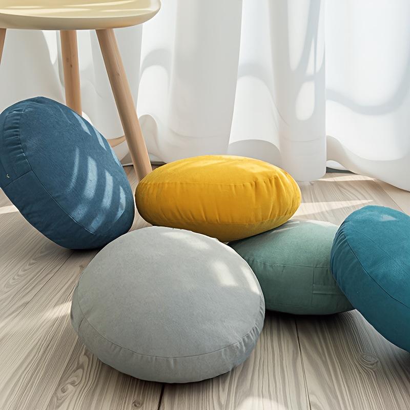 Coussin rond de style japonais en flanelle unie lavable pour salon, chambre et méditation