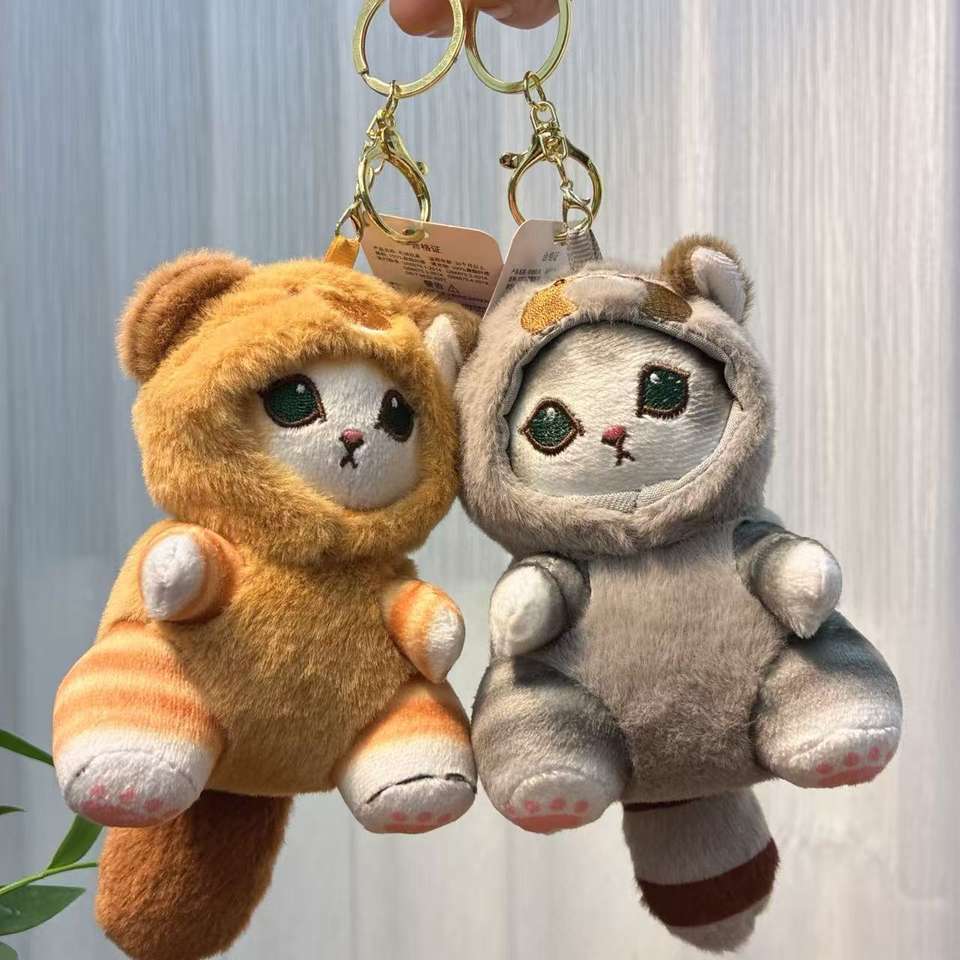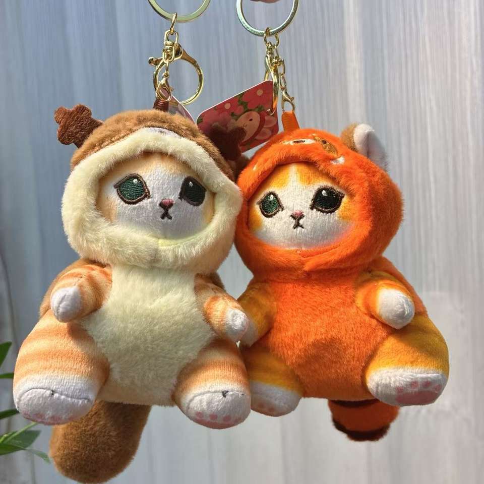 Porte-clés en peluche transformables style japonais, en coton PP, motifs requin, chat, raton laveur, castor, écureuil, jouets en peluche mignons pour sac