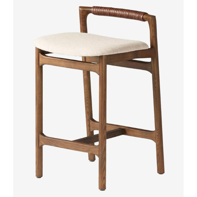 Tabouret de bar en bois massif de style japonais | Chaise de comptoir minimaliste avec siège rembourré, design élégant pour les maisons et les cafés modernes