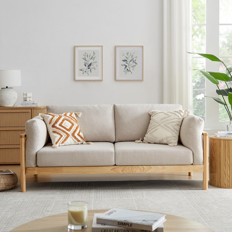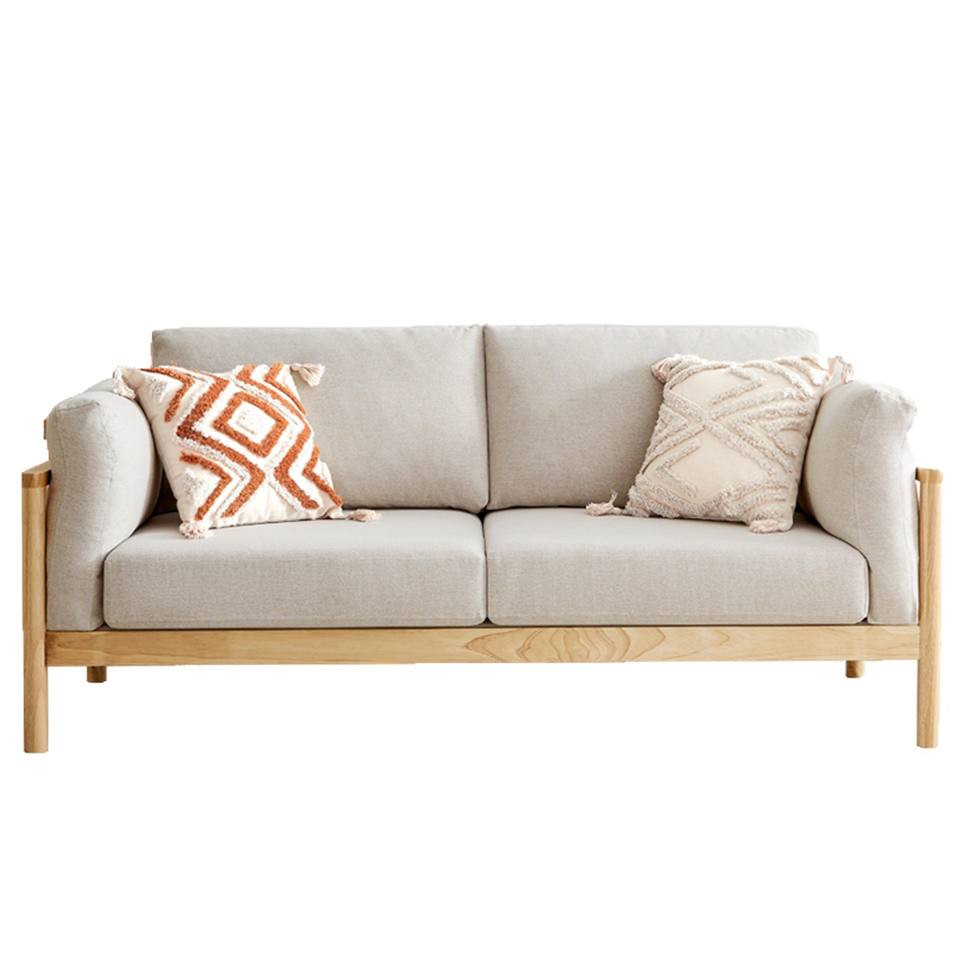 Canapé en bois massif de style japonais, trois places, coussins amovibles et lavables, mobilier de salon en tissu minimaliste nordique