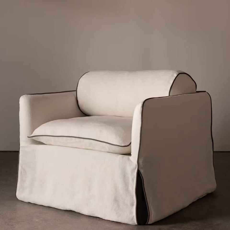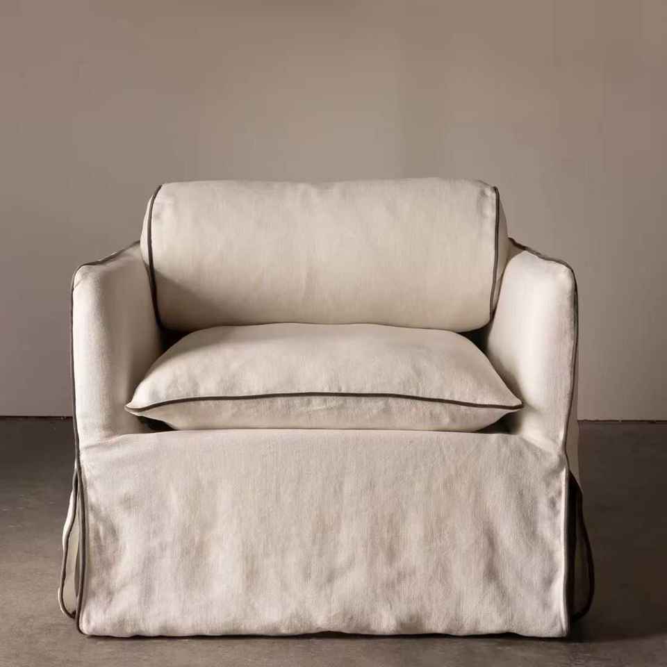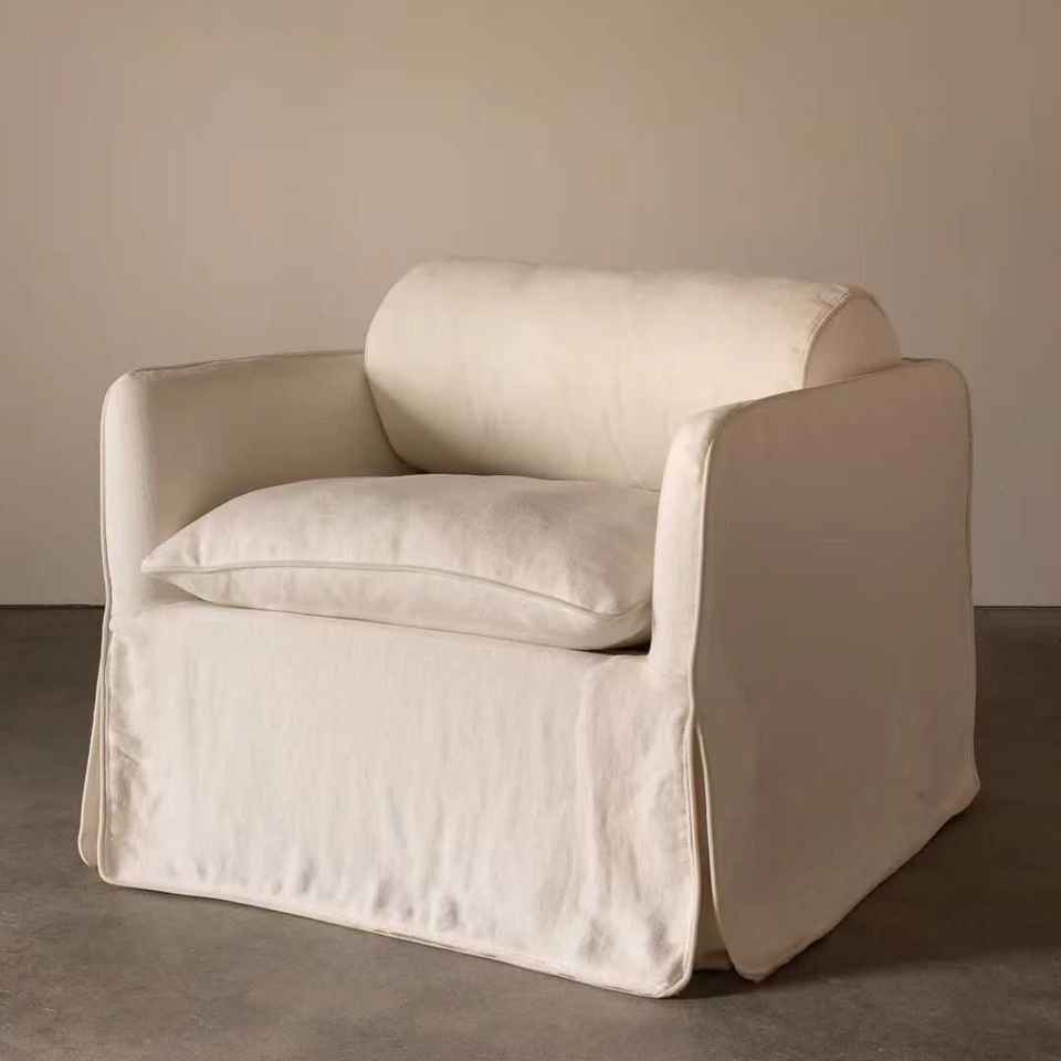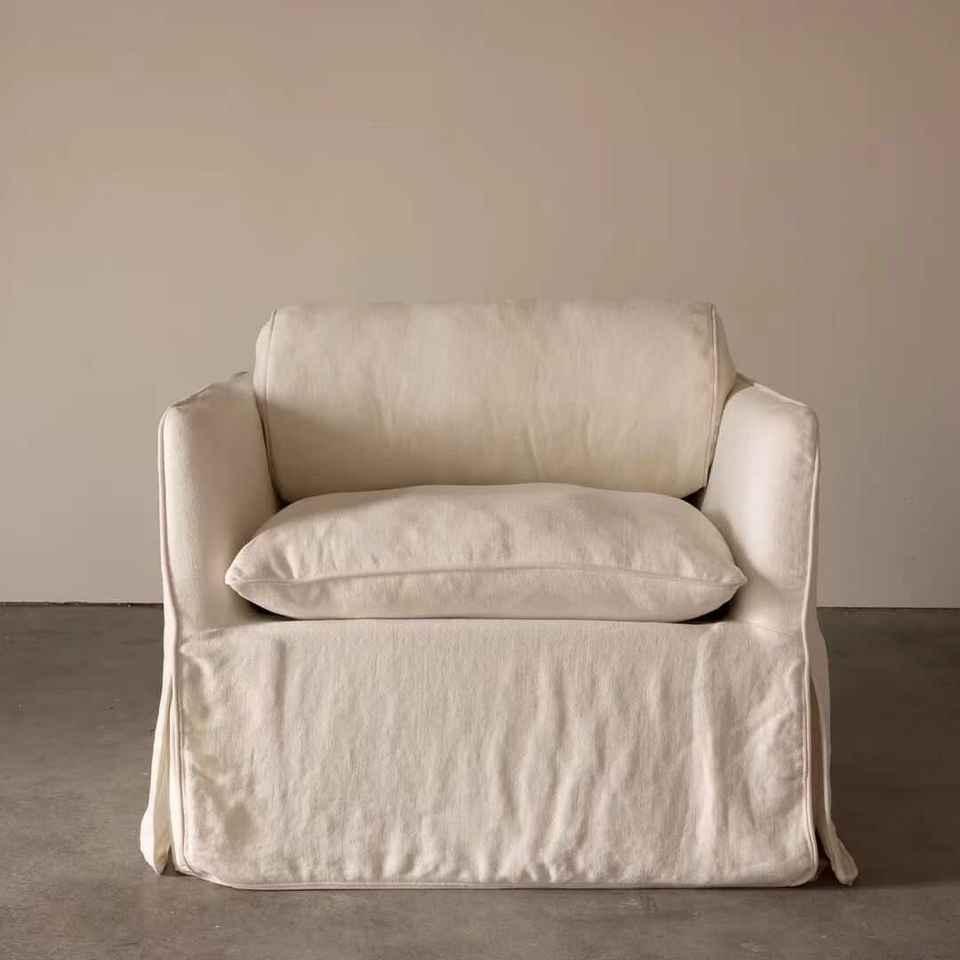 Canapé simple de style japonais Wabi Sabi, tissu en lin, housse amovible et lavable, forme carrée, rembourrage en mousse, pour maisons d'hôtes et salons.