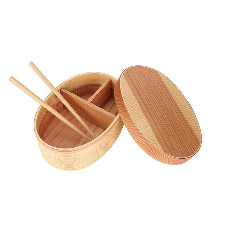 Japanese Style Wooden Sushi Box Creative Oval Wooden Box Outdoor Portable Food Storage Storage Storage Box