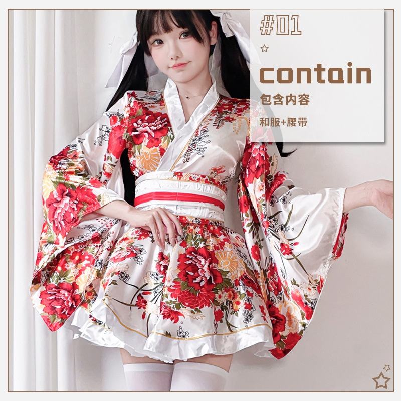 Japanese Traditional Kimono Women Yukata Set Summer Floral Print Cosplay Costume Formal Occasion Outfit