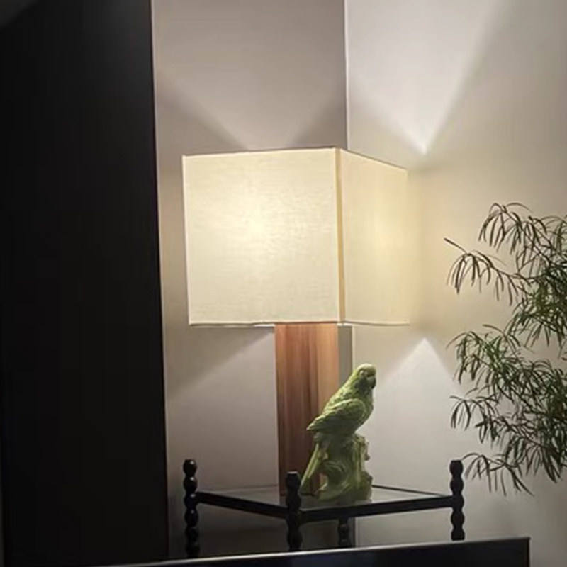 Lampe de table de style japonais vintage Wabi-Sabi pour salon, chambre à coucher, chevet, ambiance, bois massif, tissu original