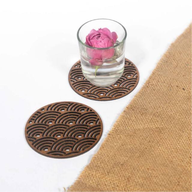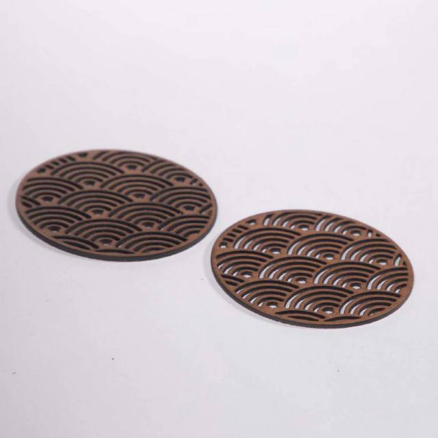 Dessous de verre à vagues japonais Dessous de verre en bois Dessous de verre en noyer laser Vaisselle à motif traditionnel Accessoires de décoration intérieure