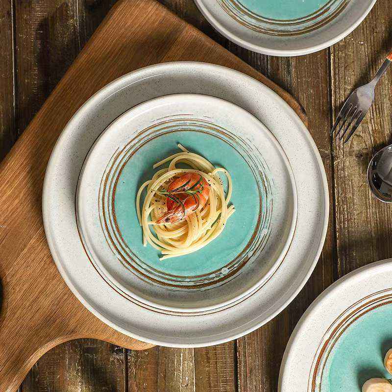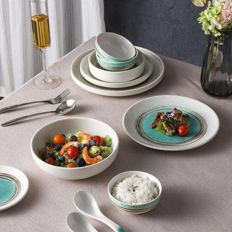 Service de vaisselle en céramique de style japonais, assiettes mates pour buffet et steak, personnalisables, vente en gros, écologiques, compatibles lave-vaisselle et four