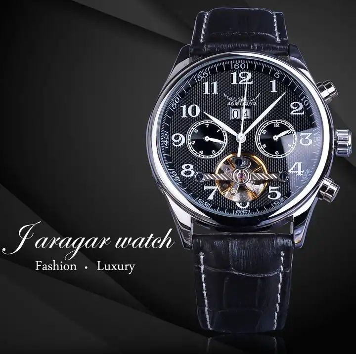 Jaragar Nouveau Mens Tourbillon Automatique Mécanique Timex Montre Noir Calendrier Horloge Bracelet En Cuir Montre-Bracelet D'affaires Cadeau