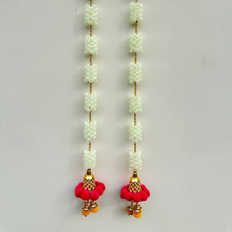 Guirlandes de fleurs artificielles Mogra avec cloche Pom Pom et Ghoongroo