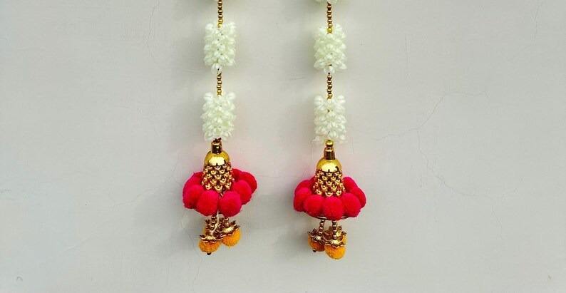 Guirlande de pompons Jasmine Mogra avec latkan doré | Guirlande décorative multi-occasions pour tous les festivals et célébrations