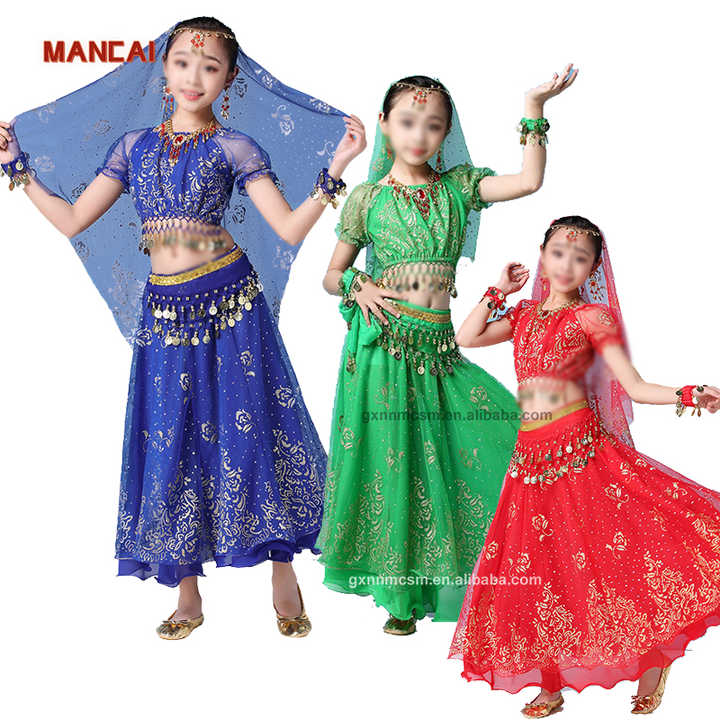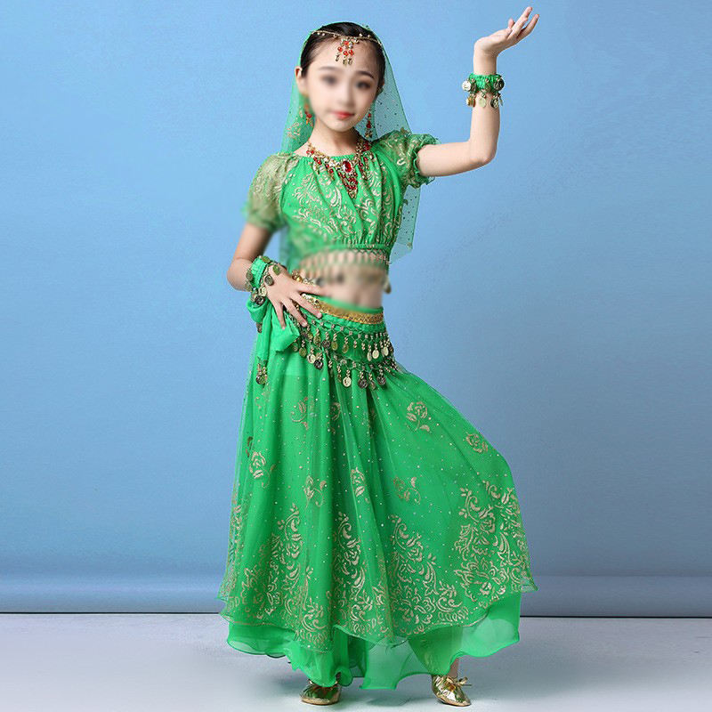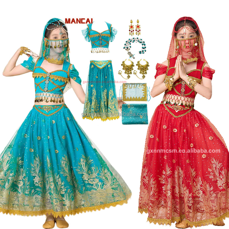 Jasmine princesse arabe scène Performance porter des vêtements de danse indienne ventre en mousseline de soie à manches courtes jupe longue tenue