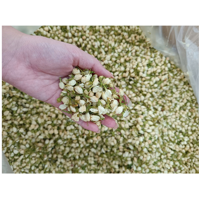 Jasmine buds dried for herbal drink use sealed for long storage tea packaging or blend assembly for bulk tea distribution