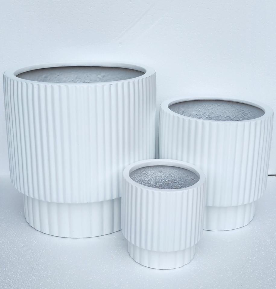 [Jason] Ensemble de 3 pots ronds en béton blanc côtelé, design moderne cannelé, jardinières en ciment pour jardin et aménagement extérieur