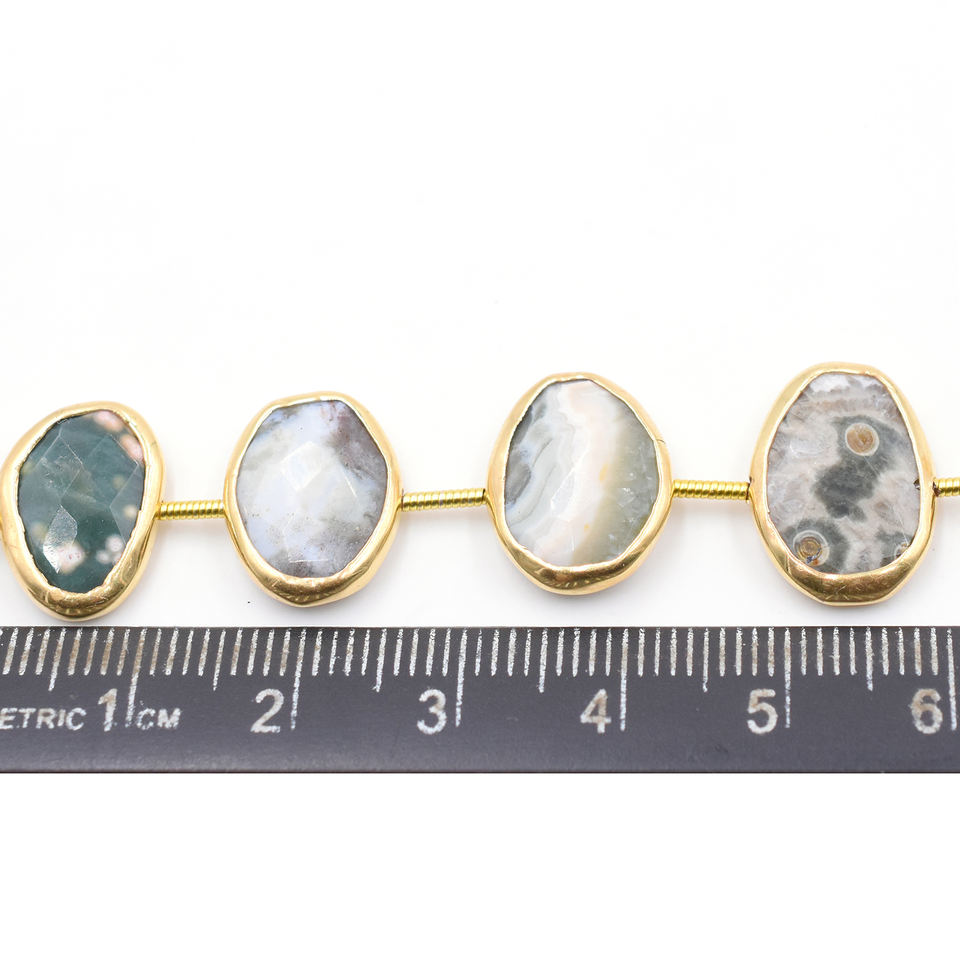 Nom du produit:Fil de 12 perles de jaspe plaqué or, percées au centre.